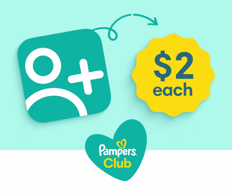 Invite up to 5 loved ones to join Pampers Club, to earn a Friend Bonus in the app. There’s $2 in it for them and up to $10 for yourself!
